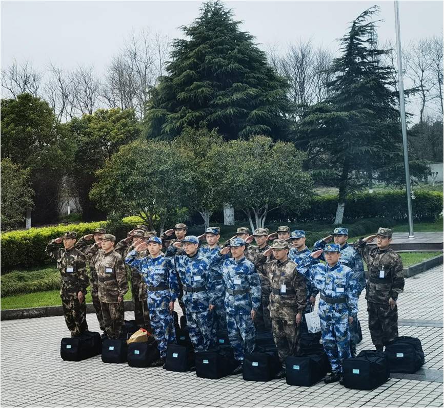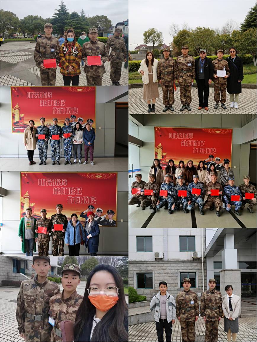 出征前,在学校党委的安排下,武装部组织各院系党支部,各院系征兵工作分站和相关辅导员老师来到民兵基地看望新兵,亲手把入伍通知书送到新兵手中,为他们送行。