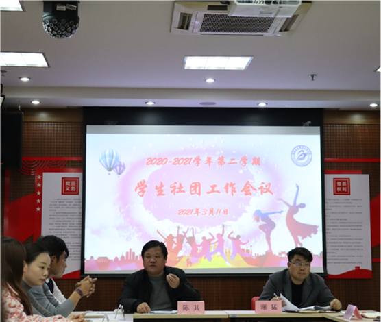 春风和煦,阳光灿烂的三月,迎来了kaiyun开云官方在线入口2020-2021学年第二学期社团工作会议,出席本次会议的有:党委学工部部长陈其、团委书记谢猛、团委副书记胡晴兰、各个社团指导老师、社长。