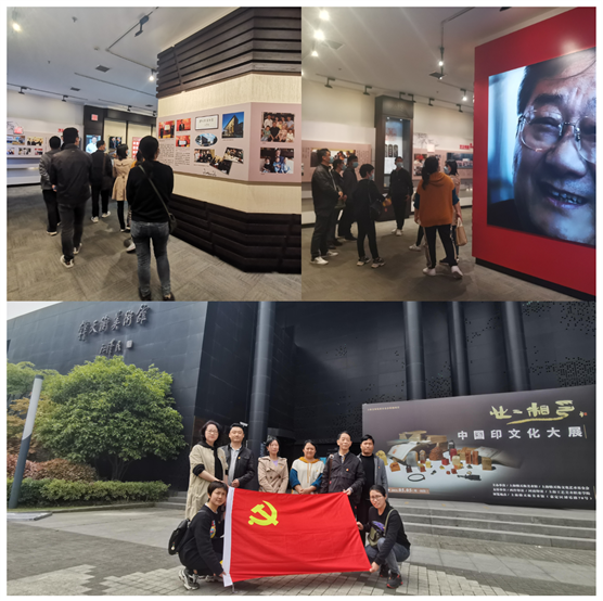 活动最后,机关三支部委员会全体成员来到位于博乐路的韩天衡美术馆,这里主体建筑由具有七十多年历史的“飞联纺织厂”原址改建,保留高大的烟囱、锯齿形厂房、木顶茶楼等文化沉淀。党员同志们按照场馆设计,依次参观了韩天衡足迹馆、字画馆、印章馆以及他捐赠的历代名家书画作品馆。观赏之余,令人不禁动容的是韩天衡这一路走来对艺术坚忍不屈的意志,更感佩于他无私的大家风范,他一次性向国家捐出超过千件书画和古董,其中包括他自己及明清以来几十位重量级大师的作品,就像他说的:“我遇到了一个好时代,我的能力与前辈大师比,不及十分之一,但我的运道跟他们比,好了不止10倍,那么我就要感激这个时代,捐这批藏品,就是感恩的具体表现,我不图任何名利上的回报。”这种无私与大度令我们敬佩更值得我们学习。