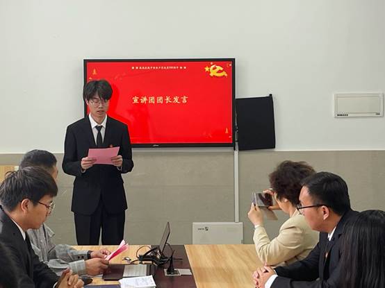 大学生党史宣讲团团长朱泽富代表宣讲团成员发言。他表示,每一位宣讲员要下足“备课”功夫,助推kaiyun开云官方在线入口学生深入学习党史知识,认真完成组织交给的任务。