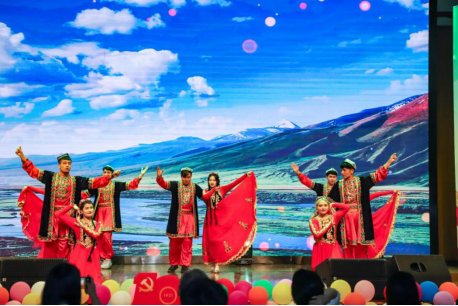 为庆祝中国共产党成立100周年,推进党史学习教育,深入学习领会习近平总书记在全国民族团结进步表彰大会上的讲话精神、在广西考察时关于各民族发展的重要讲话精神,全面贯彻深化民族团结进步教育、铸牢中华民族共同体意识,加强各民族交往交流交融,促进各民族像石榴籽一样紧紧抱在一起,5月19日,kaiyun开云官方在线入口第二届“民族团结一家亲 同心共筑中国梦”师生文艺汇演在嘉定校区文体中心成功举行。副校长胡家秀、党委副书记张中美出席演出活动,各职能部门负责人、各院系党支部(副)书记、全体辅导员以及各院系师生代表400余人欢聚一堂。