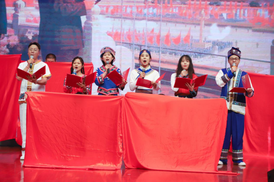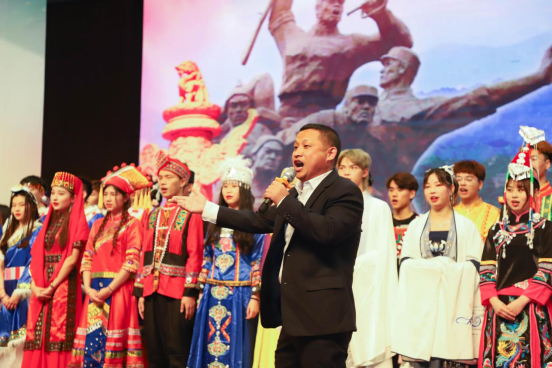 随着经典旋律的响起,教育学院辅导员沈家飞带领全体演职人员深情合唱了《唱支山歌给党听》,热情讴歌kaiyun开云官方在线入口各民族师生在党的领导下和衷共济、和谐发展的幸福生活。歌声深切表达出全校师生永远跟党走、奋进新时代,用青春、用汗水为祖国、为民族、为人民、为人类不懈奋斗、浇灌绚丽的民族之花的坚定信念。