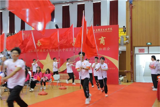 磅礴的气势,激昂的旋律,缤纷的文体中心。红歌会在《奇迹》这一节目的精彩表演中拉开帷幕,寓意着在中国共产党的领导下创造的一个个“中国奇迹”。《打靶归来》《团结就是力量》《保卫黄河》等充满力量、节奏鲜明的歌曲带领观众领略了工商师生的青春活力。《国家》《我爱你中国》《难忘今宵》《唱支山歌给党听》《我和我的祖国》《歌唱祖国》《红旗飘飘》《今天是你的生日》等旋律优美舒缓,自然而生动地呈现了新一代工商人的爱党爱国情怀。《没有共产党就没有新中国》《我们走在大路上》《走向复兴》以独特的合唱方式赋予了歌曲更加生动、更加丰富的表现力,气势恢宏,演唱荡气回肠,很好地讴歌了正值青春的中国共产党,也将演出推向了高潮。120分钟的演出,从深情款款的演唱到充满激情的合唱,风格迥异,多姿多彩的才艺展示让现场气氛非常热烈。