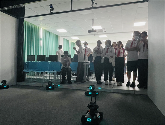 活动现场,同学们还体验了拥有Python 和 Scratch 两种语言自如切换的大疆机甲大师。大疆的实战机甲大师之间的对决,像把孩子们带到了比赛现场,大家专注又投入,不自觉的为自己心仪的机甲大师鼓舞打气,玩得不亦乐乎。