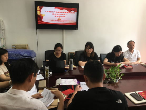 为进一步加强和改进党对高等学校的领导,推进高等学校党的建设,促进高等教育健康发展,6月9日上午,机关四支部在后勤保卫处会议室组织集中学习《中国共产党普通高等学校基层组织工作条例》,会议由支部书记朱海忠同志主持,支部全体党员到场集中学习。