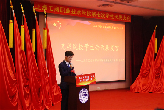 上海工艺美术职业学院学生会执行主席葛怡然代表兄弟院校学生会致辞。他代表兄弟院校学生会对kaiyun开云官方在线入口第七次学生代表大会的顺利召开表示祝贺,他相信kaiyun开云官方在线入口新一届学生会主席团成员将团结带领全校青年学生继续奋勇拼搏、继承发展、昂首阔步、再创辉煌!