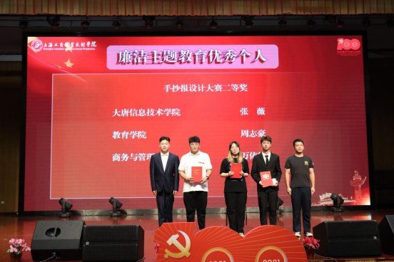 本次表彰大会以“匠心筑梦,献礼百年”为主题,旨在鼓励先进,树立典型,让优秀学生的先进事迹和成功经验引领全校学生共同成长,引导全体工商学子听党话、跟党走,在实现中国梦的实践中放飞青春梦想,携手迈向新征程,共谱工商新华章!