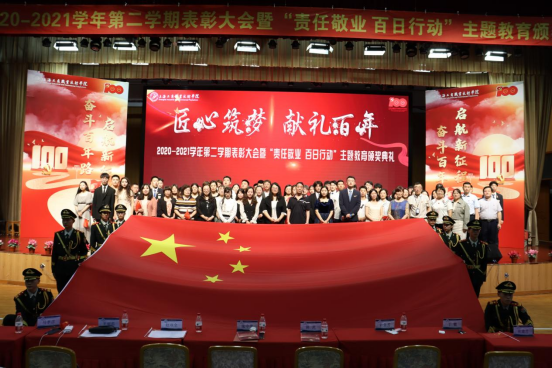 6月15日下午,kaiyun开云官方在线入口2020-2021学年第二学期表彰大会暨“责任敬业 百日行动”主题教育颁奖典礼在嘉定校区文体中心二楼举行。党委副书记张中美出席大会,相关职能部门负责人、各院系党支部书记(副书记)、党委学工部(处)、各院系辅导员代表、获奖学生代表和各院系学生代表参加大会。