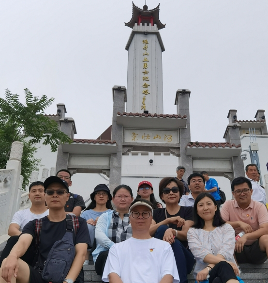 巍巍狼牙山,苍茫云海间,青山埋忠骨,溪边悼故人,奋勇五壮士,万载传英名。6日,团队来到保定易县狼牙山,那曾经通过课本道来的英雄故事,这一次,我们来到了故事发生地!全体教师怀着崇敬的心情,重走英雄路。站在山顶瞻仰“五勇士纪念塔”,远眺着当年跳崖之处,真切的感受到了革命信念所蕴含的无穷力量。陈列馆里,那些记载着革命先辈们为了民族解放浴血奋战的实物、图片让大家追忆起当年那段永留史册的烽火岁月。狼牙山五勇士纪念雕像前,鲜红的党旗、庄严的党徽和一张张斗志昂扬的脸庞,寄托着全体党员对革命先烈们深切的缅怀之情,表达着党员同志们为党的事业不懈奋斗的拳拳之心。