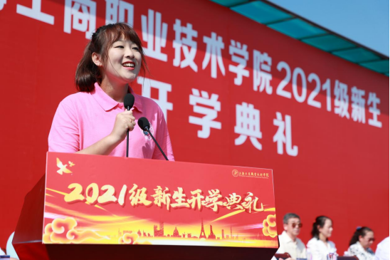 艺术设计系贾艺闻作为新生代表发言。她号召所有同学要志存高远,也要脚踏实地;要精深钻研,也要通识博雅;要修身自省,也要担当使命。在党的光辉沐浴下、在党的教育方针呵护下,在工商这片育人的沃土之上,奋发学习、历练成长,创造属于自己的灿烂未来,助力中国的锦绣之梦!