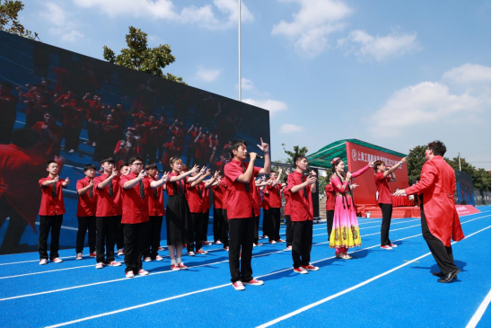 典礼的最后,机电工程系学生代表带领全场师生合唱《国家》,激情高昂的歌声回响在体育场上空,师生挥舞手中国旗,将开学典礼推向最高潮。全体师生在歌声中弘壮志、铸梦想,共同祝愿我们伟大的祖国繁荣昌盛,学校事业发展蒸蒸日上!
