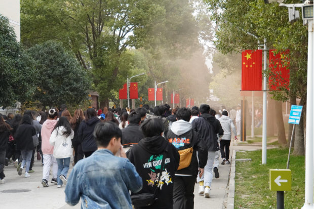 下午3点,实景应急疏散演习正式开始。演习开始前,徐晓燕作动员讲话,阐述了开展消防疏散演习的目的和意义。随后,陈英南下达“演习开始”指令,消防疏散演习正式开始。图书馆301出现模拟火情,智能烟感将火情信息传达到应急指挥中心,应急处置工作随即展开。
