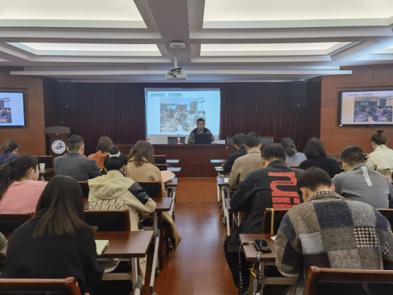 在培训的后半场,董老师邀请四位辅导员进行一次合作对话的演示,辅导员们通过对话讲述自己工作中遇到的学生难题,在自然的对话流动中找到了问题解决的办法,也帮助大家进一步理解如何在实际工作中进行合作对话以及对话的意义。