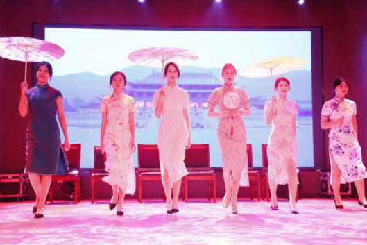 一袭芳华,两袖月光,或灵动,或素雅,或婀娜,诉说工商风雅。艺术设计系段文卓、林美君,商务管理系张馨月,珠宝系陈艳,教育学院张雨戈、王艳雪带来的旗袍秀《华夏风韵》。
