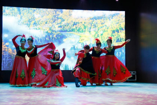 曲调悠扬,舞步奔放。现代服务学院苏比努尔·艾山江帕、提古丽·吾守尔、艾力木拉提·艾海提、吾尔加娜提罕·阿卜杜热伊木,商务与管理系苏比努·阿不列孜、古丽波斯坦·艾则孜带来的舞蹈《阳光下的玫瑰》,优美的舞姿,展示幸福美好的校园生活。