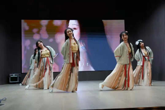 裙带飞舞肌似雪,婀娜多姿彩云追。紫嫣红唇摄魂目,回眸一笑步步高。汉文化社王起丹、顾环銎、黄晴嫣、汪婉菁、刘欢欢、蔡馨怡的舞蹈表演《怎叹》,给人别具一格,耳目一新之感。
