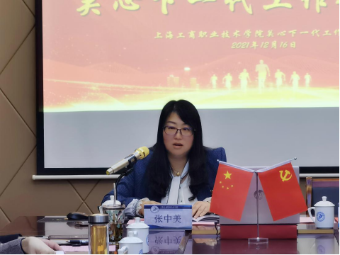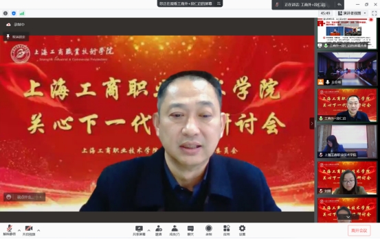 上海工商外国语职业学院关工委副主任、党委副书记、副校长段仁启就完善组织机构,健全管理制度;强化思想引导,关心青年成长两个方面,分享了关心下一代工作内容。通过开展学生教育引导、关爱帮扶活动,实施理想信念、思想道德和革命传统教育,引导他们树立正确的世界观、人生观、价值观,为学生健康成长提供了有力保障。