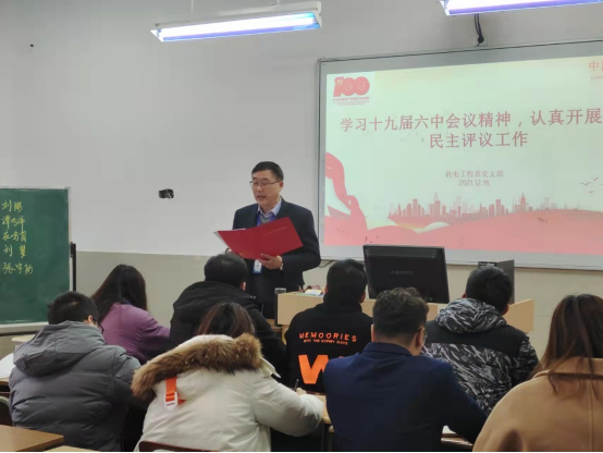 【学习党史 礼赞百年】机电工程系党支部召开党员大会:学习十九届六中全会精神,动员部署支部民主评议工作