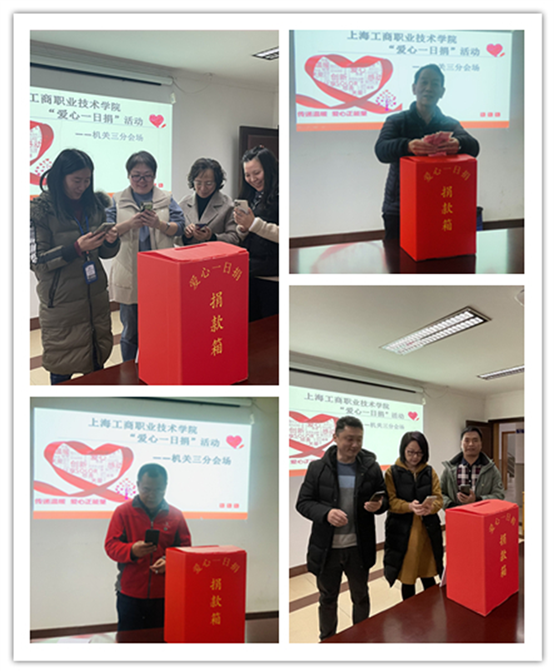 扶危济困、乐善好施是中华民族的传统美德。为进一步体现教职工互帮互助的奉献和关爱精神,提高对困难教职工的帮扶力度,为因重大疾病、遭受重大意外事故等原因造成经济生活困难的教职工提供帮助。经学校党政倡议、有关部门配合、学校工会筹备实施,于12月24日在嘉定校区举办了“爱心一日捐”活动启动仪式,青浦校区通过视频连线参加。