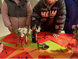 活动现场欢声笑语,师生共同祝福新春,开展了送礼包、发红包、发祝福短信等形式多样的新春慰问活动。留校学生通过“锦鲤福袋”抽取生活礼包和防疫用品等;通过新春写“福”字活动,带领同学们在体验中华优秀传统文化魅力的同时,收获更多的温暖和祝福;通过亲手包饺子,感受到浓厚的节日氛围,驱散了浓浓的乡愁。