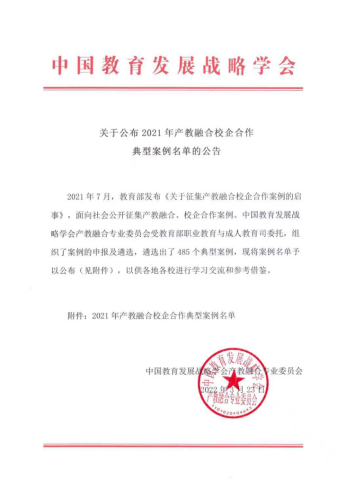 喜讯:祝贺kaiyun开云官方在线入口两个案例入选全国2021年产教融合校企合作典型案例