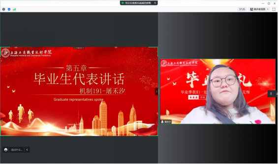 计网193班李胡洋、应英191班吴佳宝、数媒191班程一璇、旅游191班施倩丽、会计193班朱一丹、机制191班屠禾汐、新能源192班李新宇作为各院系毕业生代表发言。各位毕业生纷纷谈到大学校园带给他们的不仅是专业知识上的提升,更是能力的增强和视野的开拓。感谢母校为同学们创造的良好的学习环境以及丰富的校园生活,感谢各位老师的谆谆教导和悉心关怀,毕业生们将心怀感恩之心和乐于奉献之情继续拼搏,将所学本领应用于实践,为母校争光。