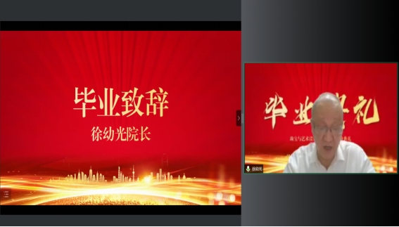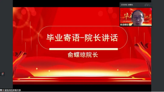 校长陈英南以“云寄语”,为即将迈向人生新征程的毕业生们,送上最美好的祝福!陈校长回顾了同学们从五湖四海汇聚到工商,将最美好的青春、最动人的韶华、最努力的付出留在工商的点点滴滴,并表示学校每一个成绩的取得,都有大家的参与和见证。青年是整个社会力量中最积极、最有生气的力量,是国家的希望、民族的未来。他希望同学们要时刻牢记习近平总书记的殷切嘱托,在伟大的新时代,做一个堪当大任的新青年。一是不畏浮云遮望眼,志存高远,奋发有为,以精益求精的“工匠精神”,同国家一起踏上建设社会主义现代化强国的新征程,以“请党放心”的青春誓言、“强国有我”的理想信念照亮前行之路;二是追求学无止境的真知,独立思考,敢于创新,希望毕业生们主动地参与创新范式迭代、创新内容转变、创新组织变革等进程,充分发挥青年一代的创新能力,敢闯敢干,将所思所学在实践中发光发热;三是保持初心的本真,真诚善良,勇于担当,希望毕业生们用责任与担当为青春增色、为人民服务、为祖国奉献,青春力量才能驻扎起强大的根脉,茁壮生长、绽放炫丽之花。最后,陈英南校长鼓励各位毕业生勇敢去闯外面的世界,扬帆起航,搏击风浪,祝福所有毕业生在新的征程中大展宏图,一切顺利。