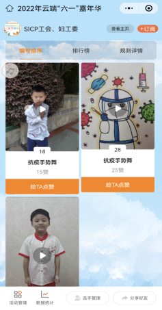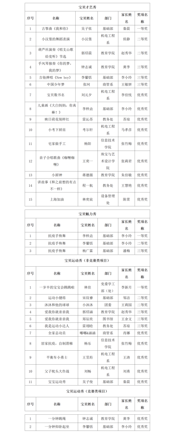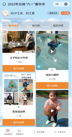为庆祝2022年“六一”国际儿童节的到来,给学校教职工子女营造一个欢乐、有意义的节日,学校工会、妇工委于6月上旬举办云端“六一”嘉年华活动,引导宝贝们养成体育锻炼和科学防疫的良好习惯,展示才艺展现魅力,表现出朝气蓬勃、自信乐观、挑战自我的精神风貌。活动分为宝贝运动秀、宝贝魅力秀、宝贝才艺秀三大类。