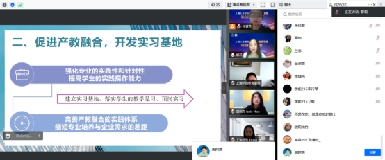 企业单位代表轮流上线宣讲,介绍企业概况,发展前景及招聘岗位等相关信息,并阐明了公司对人才的需求。交流会中针对就业形势,提升职场竞争力等方面展开讨论,企业将进一步与学院持续加强合作。