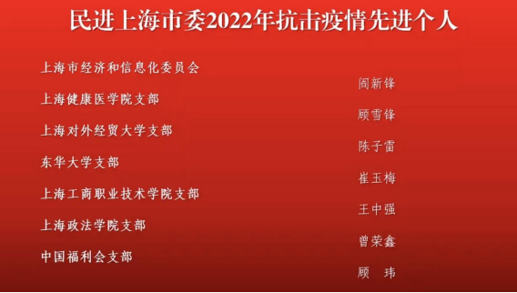 2022年7月14日,民进上海市委2022年抗击疫情先进个人表彰大会在线上举行。民进kaiyun开云官方在线入口支部主委、学校副校长王中强出席会议并荣获2022年抗疫先进个人称号。