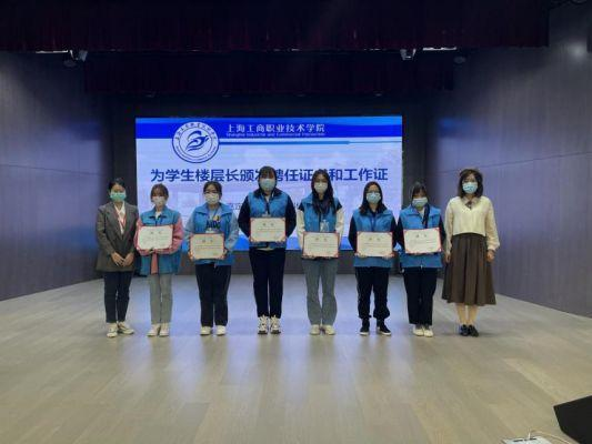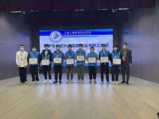大会第三项议程,由两校区教师楼长、副楼长为学生楼层长颁发聘书和工作证。