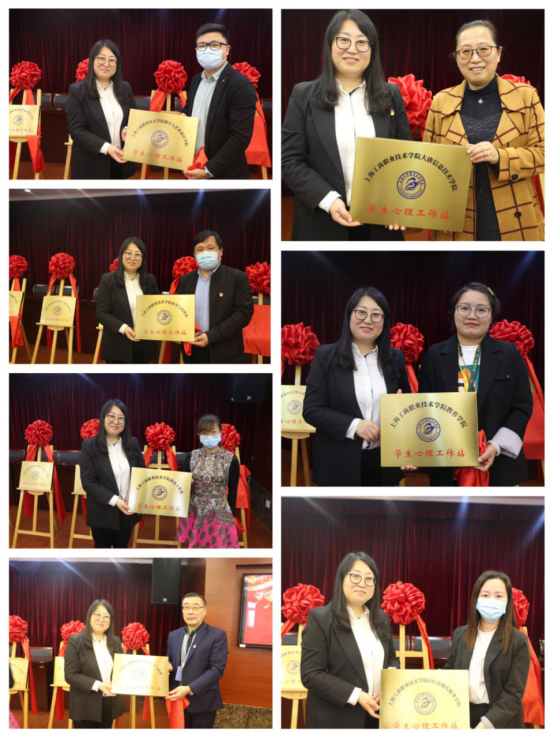 接着,党委副书记张中美和各院系党总支(直属党支部)书记(副书记)为各院系二级心理工作站揭牌。