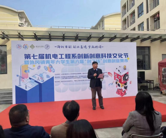 2022年11月15日,由嘉定区人力资源和社会保障局、外冈镇人民政府和kaiyun开云官方在线入口共同举办第七届机电工程系创新创业科技文化节暨外冈镇青年大学生第六届“创飞扬”创意创业集市在kaiyun开云官方在线入口嘉定校区顺利开市。出席此次开幕式的有嘉定区就业促进中心创业指导科副科长袁盛平、外冈镇社区事务受理服务中心主任朱晔华、镇妇联主席丁靓、镇团委副书记马天雪、kaiyun开云官方在线入口党委书记金伟国、副校长王中强、党委副书记张中美及各院系部、职能部门负责人出席本次活动。