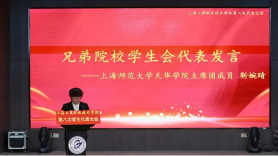 校党委副书记张中美代表学校党委向本次学生代表大会的顺利召开表示热烈的祝贺!向到场的兄弟院校学生会代表和在座的全体学生代表以及全校青年学生致以最诚挚的问候!她充分肯定了第七届学生会过去一年来的成绩,并表示:没有等出来的辉煌只有干出来的精彩,作为全面建设社会主义现代化国家新征程的实践者,希望大家奋发有为、勇毅笃行、接续奋斗、乘势而上,做一名有理想、敢担当、能吃苦、肯奋斗的新时代好青年。同时对即将产生的新一届主席团提出四点希望:一要向“上”生长,打造一心向党的组织;二要向“下”扎根,培养一往无前的队伍;三要向“内”探索,锤炼一身正气的骨干;四要向“外”发力,构成一以贯之的桥梁。