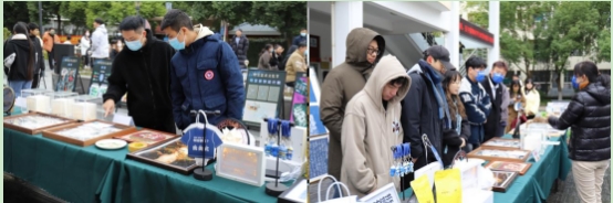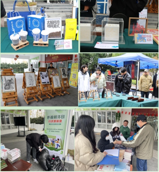 活动现场有珠宝首饰展示区和艺术设计展示区,还有同学们的动画短片和现场作画展示,以及“旧衣换新书”活动。