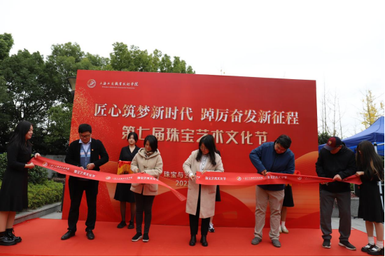 校党委副书记张中美,副校长张扬,校长助理、党政班主任孙洁,珠宝与艺术设计学院院长徐幼光,珠宝与艺术设计学院党支部书记、副院长年文韬为开幕式剪彩。