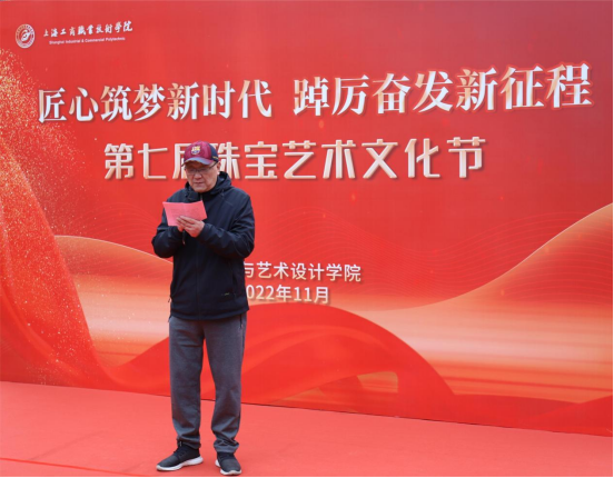 珠宝与艺术设计学院院长徐幼光为开幕式致辞。他首先代表珠宝与艺术设计学院向莅临的领导老师表示热烈的欢迎,介绍了本次活动的目的和内容,其次还详细列举了院系师生获得优秀成果和荣誉。他指出,本次珠宝艺术文化节可以真实地反映出当前珠宝与艺术设计专业的教学水平和成果,为学生提供一个展示的舞台,也是一次交流和学习的平台。最后他讲到我们的教学今后要引进最新的科技成果,希望为我院的珠宝艺术教育事业带来新的动力。