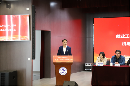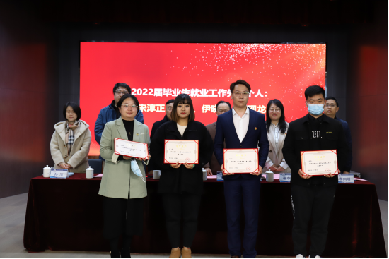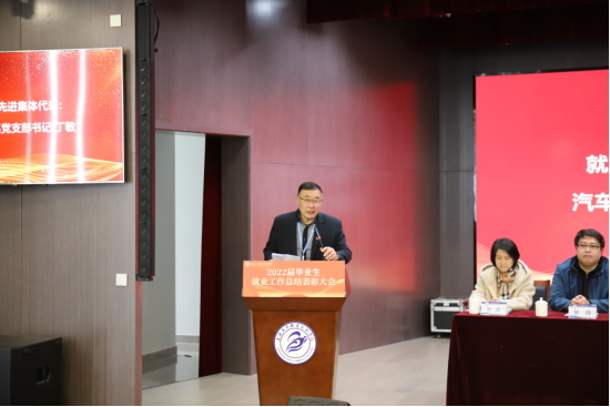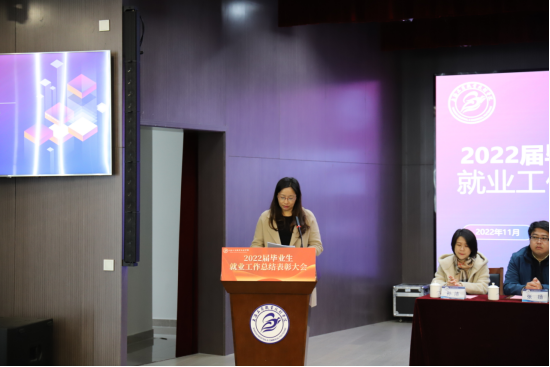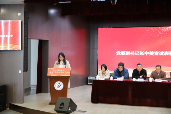 党委副书记张中美宣读就业工作先进个人代表、就业工作先进集体代表、2021-2022学年职业生涯发展教育优秀工作室名单,并对先进集体和个人进行了颁奖。