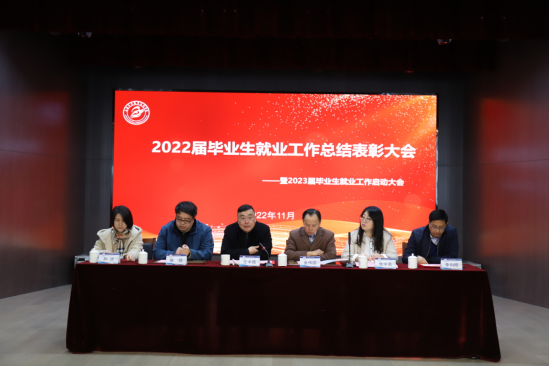 11月30日下午,学校在新报告厅举行2022届毕业生就业工作总结表彰大会暨2023届毕业生就业工作启动大会。全体校领导,各职能部门负责人,各院系党政正副职负责人,各院系专业正副主任,2022届毕业班辅导员,2023届毕业班辅导员,各院系生涯工作室负责人,招生就业办全体教师出席会议。会议由副校长王中强主持。