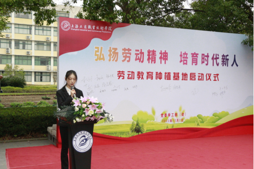大唐信息技术学院学生宋安琪作为学生代表发言。她表示,作为新时代的大学生应该参加一些力所能及的劳动。学会劳动,养成劳动习惯是学会生活、形成健康人格的重要保证。她倡议广大同学用辛勤的劳动,去迎接生活的挑战、去创造美好的生活。