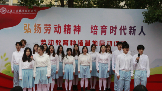 校领导为各院系学生代表授劳动工具和劳动实践证。启动仪式在大学生艺术团的《最美的太阳》歌声中落成。