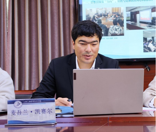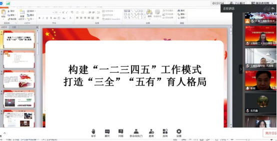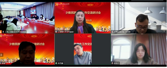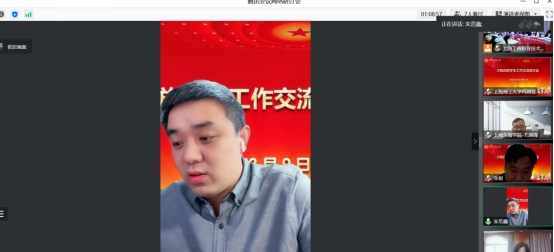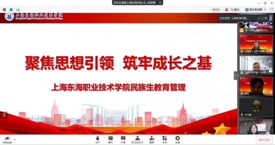 上海中侨职业技术大学党委学工部(处)部长朱范鑫老师分别从学校少数民族学生基本情况、少数民族学生工作的主要做法、获得主要成效以及今后的努力方向做了分享交流。