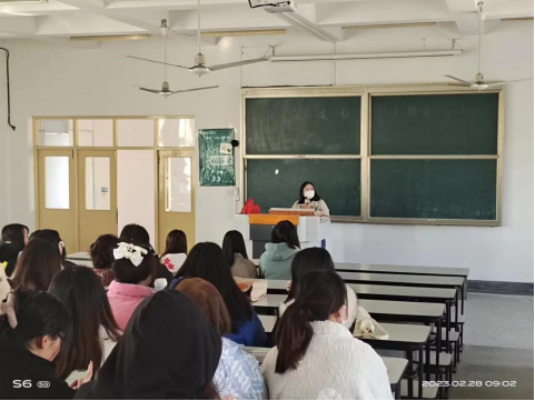 商务与管理系辅导员刘新雨在2023年2月28日第一教学楼303室举行了大二下学期第一次全体班会。她在班会上强调班级学生要在新学期努力学习、在班级里团结同学、在寝室里做好卫生多通风让学生们加强防疫安全。