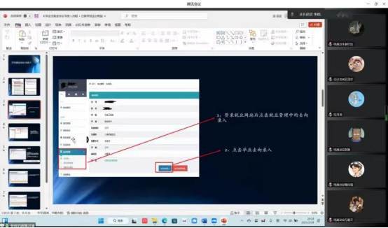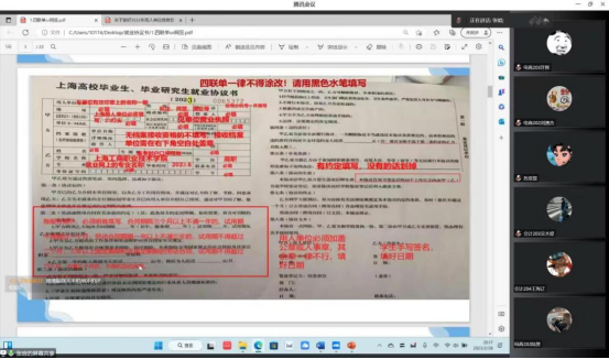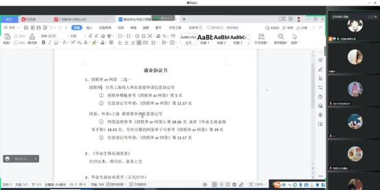 毕业班学生即将面临着实习、论文与就业等多重挑战,为了缓解毕业生的就业焦虑,规范学生实习,帮助同学们尽快找到就业方向,毕业班在腾讯会议进行以“责任敬业”为主题的班会。