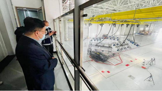 王中强一行在上海机动车检测认证技术研究中心有限公司招聘主管陈云的陪同下参观了机动车检测碰撞实验室,并在工程师的讲解下了解各项机动车碰撞测试说明。