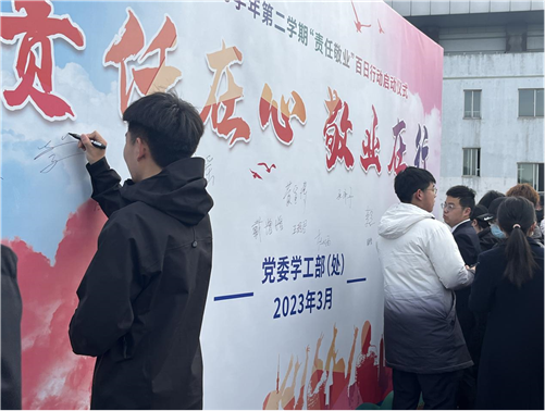 为践行社会主义核心价值观,学习贯彻落实党的二十大精神、把“工匠精神”融入学生主题教育全过程。党委学工部(处)以工匠精神主线组织开展“责任敬业”百日主题教育系列活动。3月13日上午,两校区同步开展升旗仪式暨“责任敬业”百日行动启动仪式。党委学工部(处)、各院系党总支(直属党支部)书记(副书记)、辅导员、2022级全体学生参加活动。