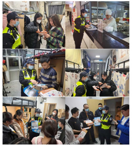 校区民警潘警官和学校党委保卫部、后勤保障处副处长顾琼华带队以走访宿舍、借助传单讲解反诈知识等方式,向在校师生员工宣传防范电信诈骗知识,揭露电信诈骗的犯罪伎俩,提醒师生员工不要轻信陌生电话和信息、不点击不明链接、不向陌生人透露自己的银行卡号和身份信息,树立风险防范意识。在走访宣传中,华新派出所通过讲解近期发生的电信网络诈骗典型案例,以案释法,提醒学生在日常生活中要提高警惕,不贪图蝇头小利,将“不听、不信、不转账”牢记于心。