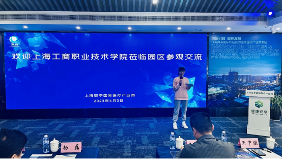 毕业生代表分享了目前在上海安亭国际医疗产业园工作实习、生活情况,并对学校本次走访看望表示感谢。