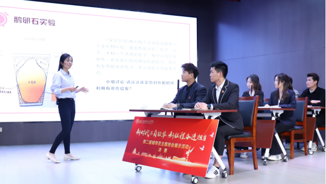 经过初赛(教案设计)、复赛(说课)的精彩竞逐和评选,有6名辅导员晋级决赛。决赛形式是班会的现场展示,主要考察辅导员开展主题班会的现场组织和语言表达能力。决赛过程中,选手们自觉用党的二十大精神指导实践,对班会的开展巧妙构思,精心策划,运用短视频、音乐、课堂实验、问答等形式,案例演绎生动、故事分享鲜活、互动精彩自然,在潜移默化中厚植红色基因,全面落实立德树人根本任务,呈现了一堂堂主题鲜明、寓意深刻、内涵丰富、形式多样、精彩纷呈的主题班会。