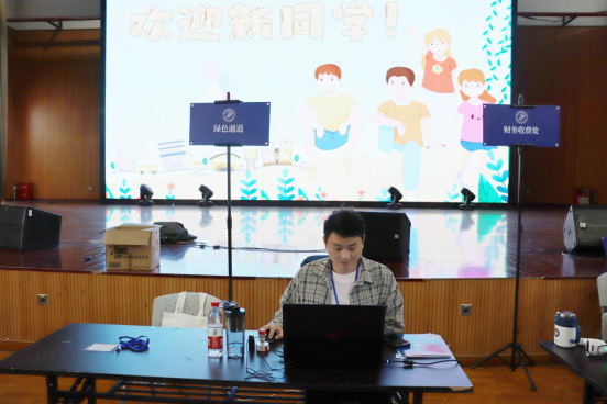 迎新报到现场,学校副校长王中强到各个服务点指导工作,看望新生,了解新生报到情况,慰问参与迎新工作的师生。招办老师核查学生录取情况,引导学生办理报到手续;党委学工部(处)老师为家庭经济困难暂时无法交纳学费的同学开设绿色通道;财务处的老师为学生现场办理交费手续;信息办老师为新生报到注册做好数据采集和网络保障等工作;后勤工作人员、学生志愿者为新生和家长提供指引服务。学校各部门通力合作、各司其职,竭力服务好新生和家长。